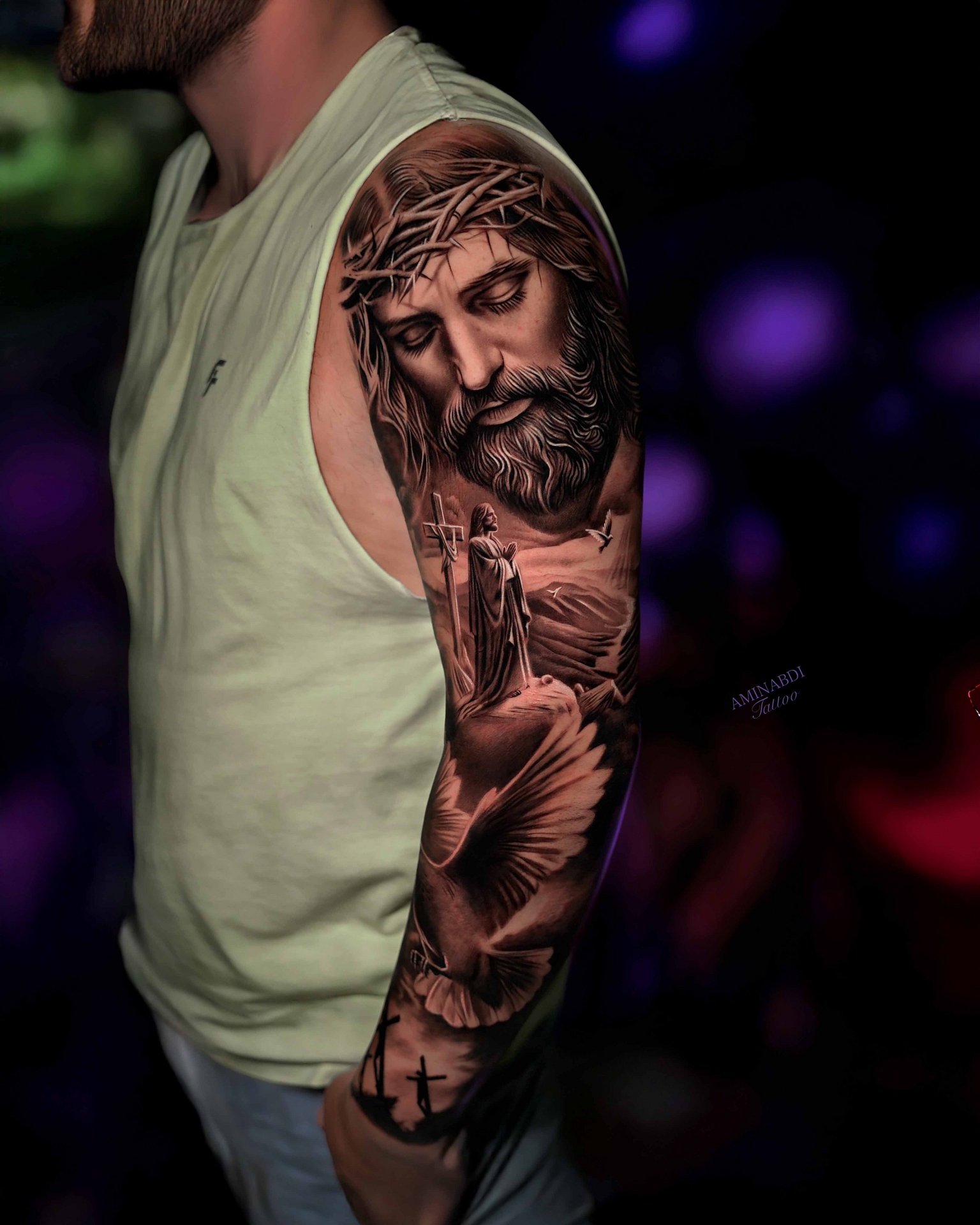 Amin is one of our new, multi-award-winning artists and is originally from Iran. He is a seasoned professional with many years in the industry and masters countless styles, but truly excels at realism in both color and black & grey, surrealism, and cover-up projects.