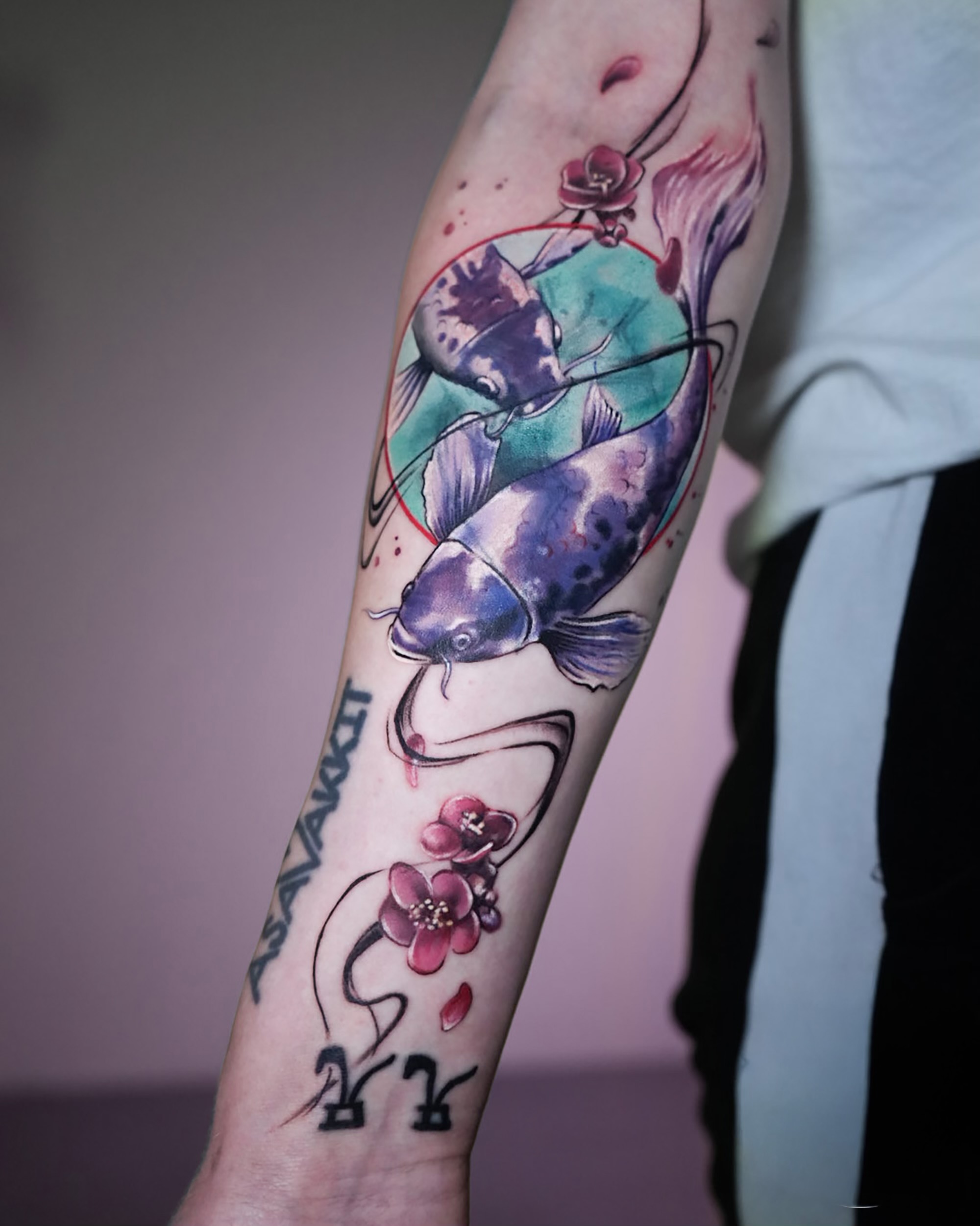 A cover-up tattoo conceals an existing tattoo by building a new design over it, using shape, shading, and color to break up the old one.