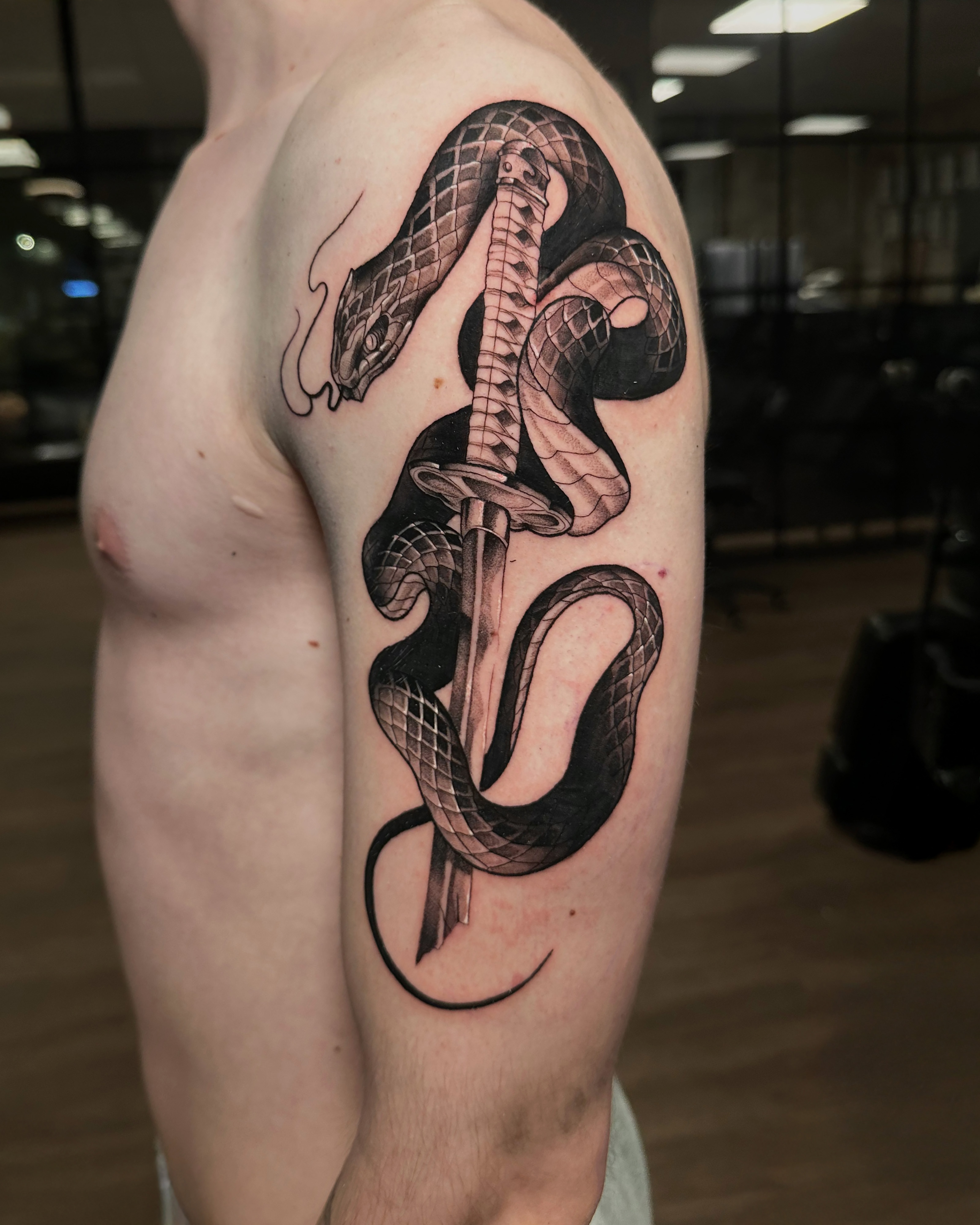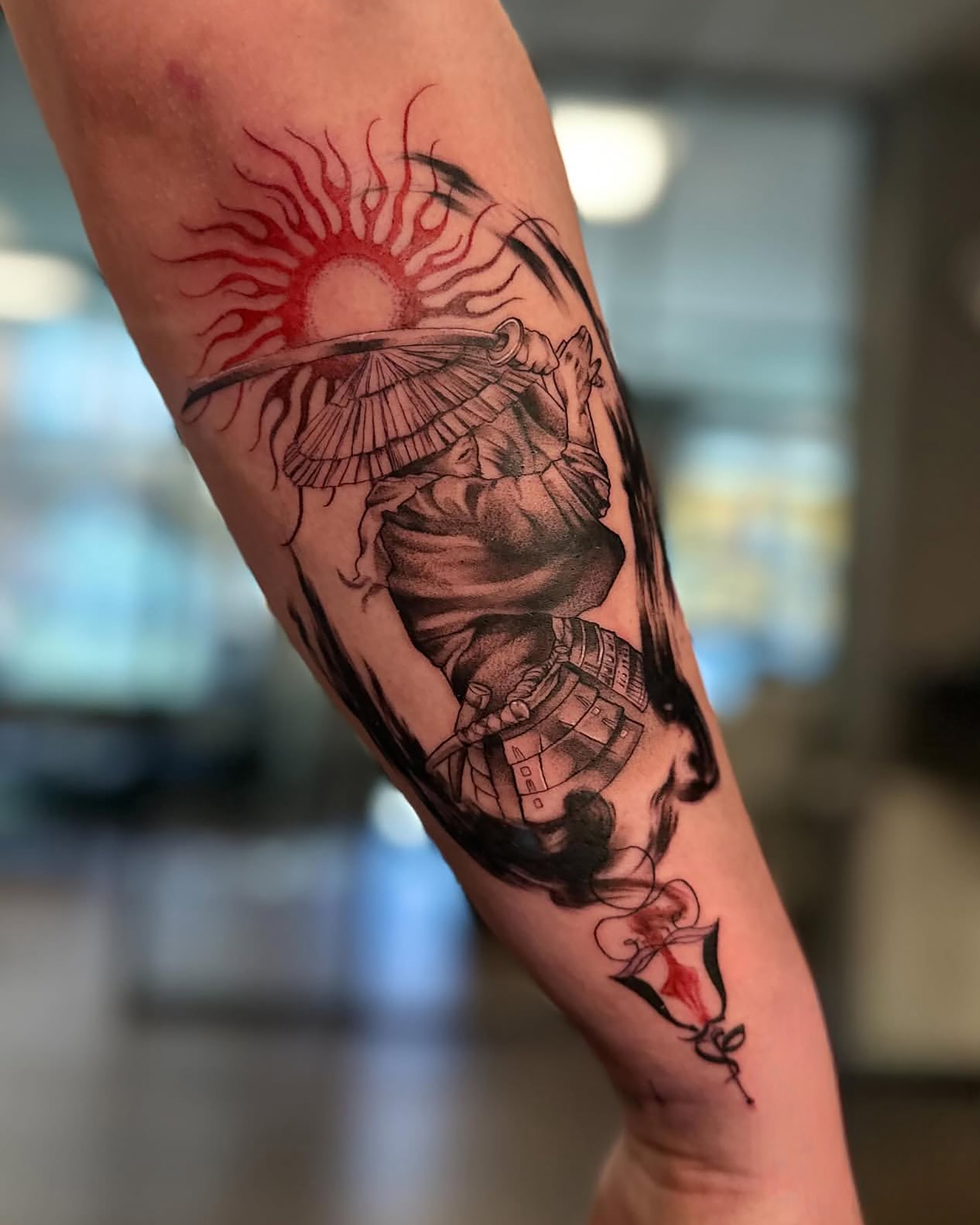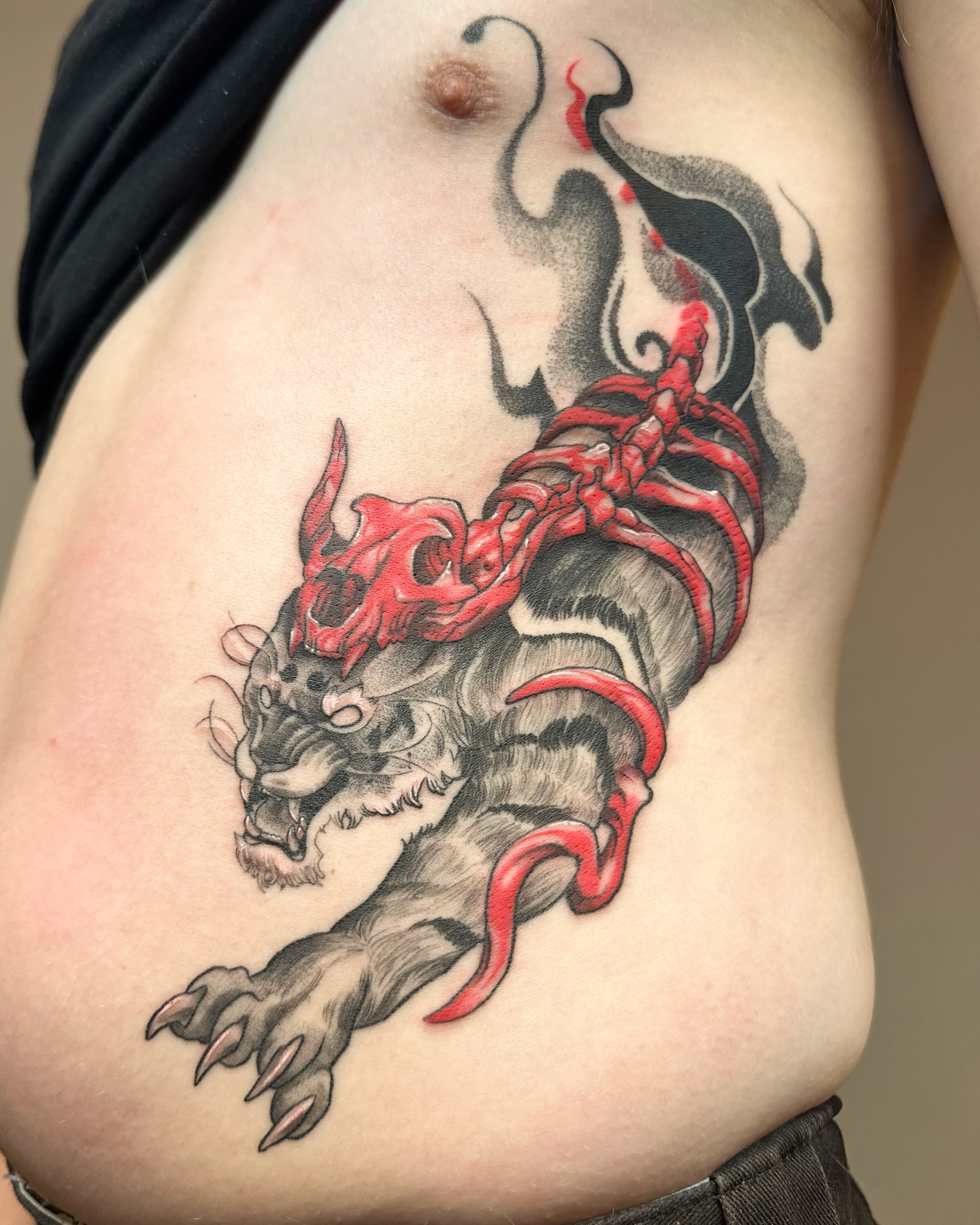 The Oriental tattoo style is characterized by detailed motifs such as dragons, koi fish, and flowers with strong symbolism.
