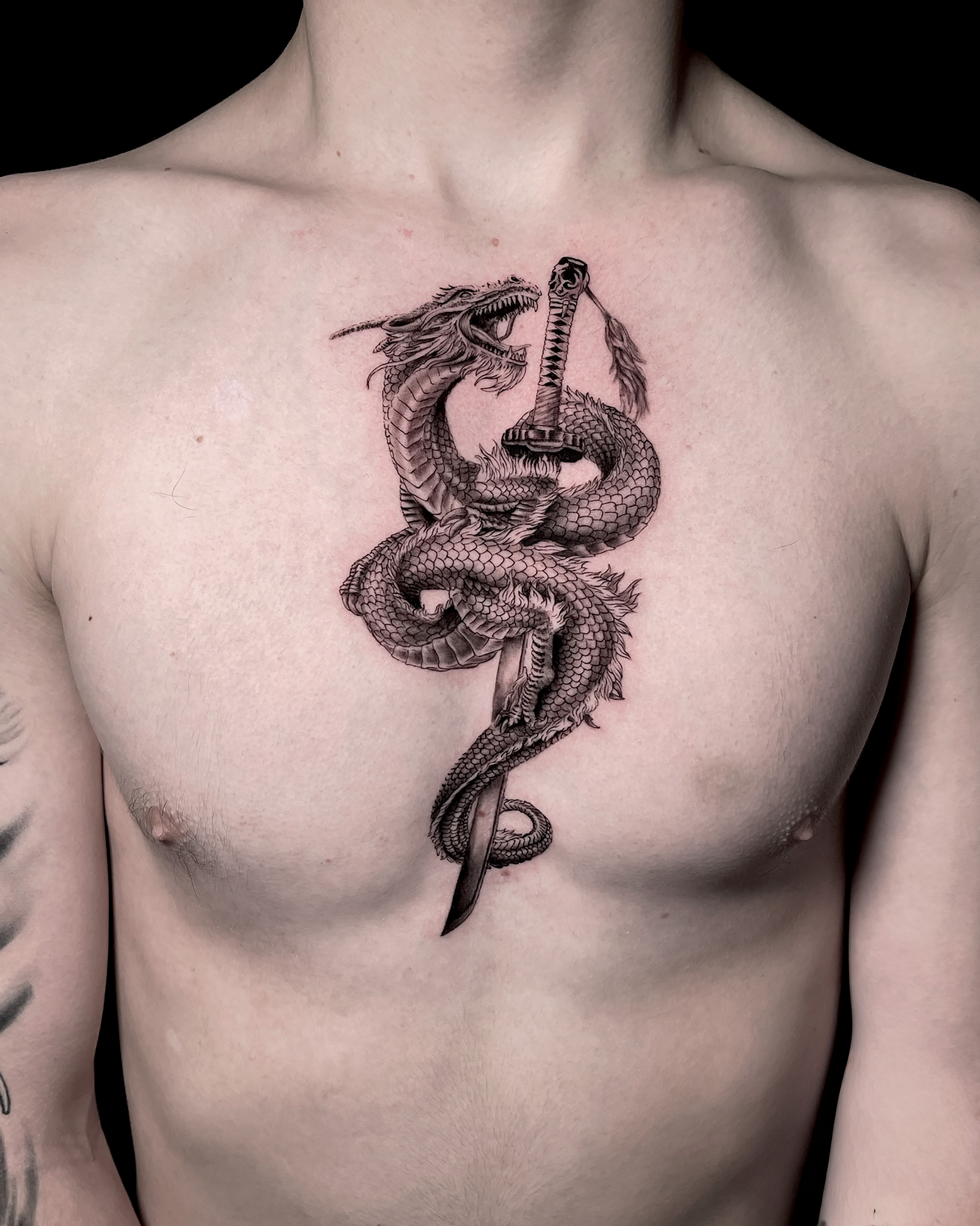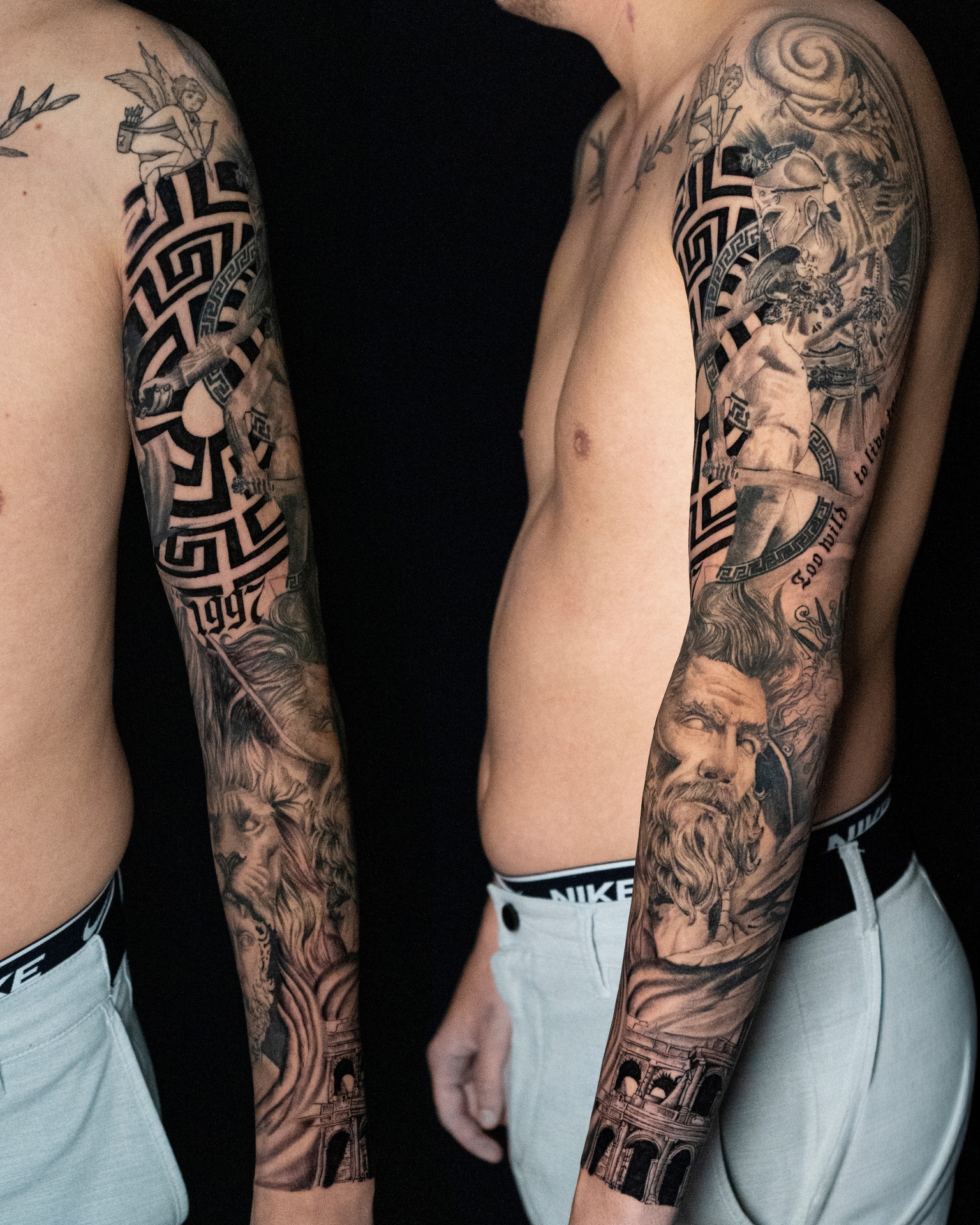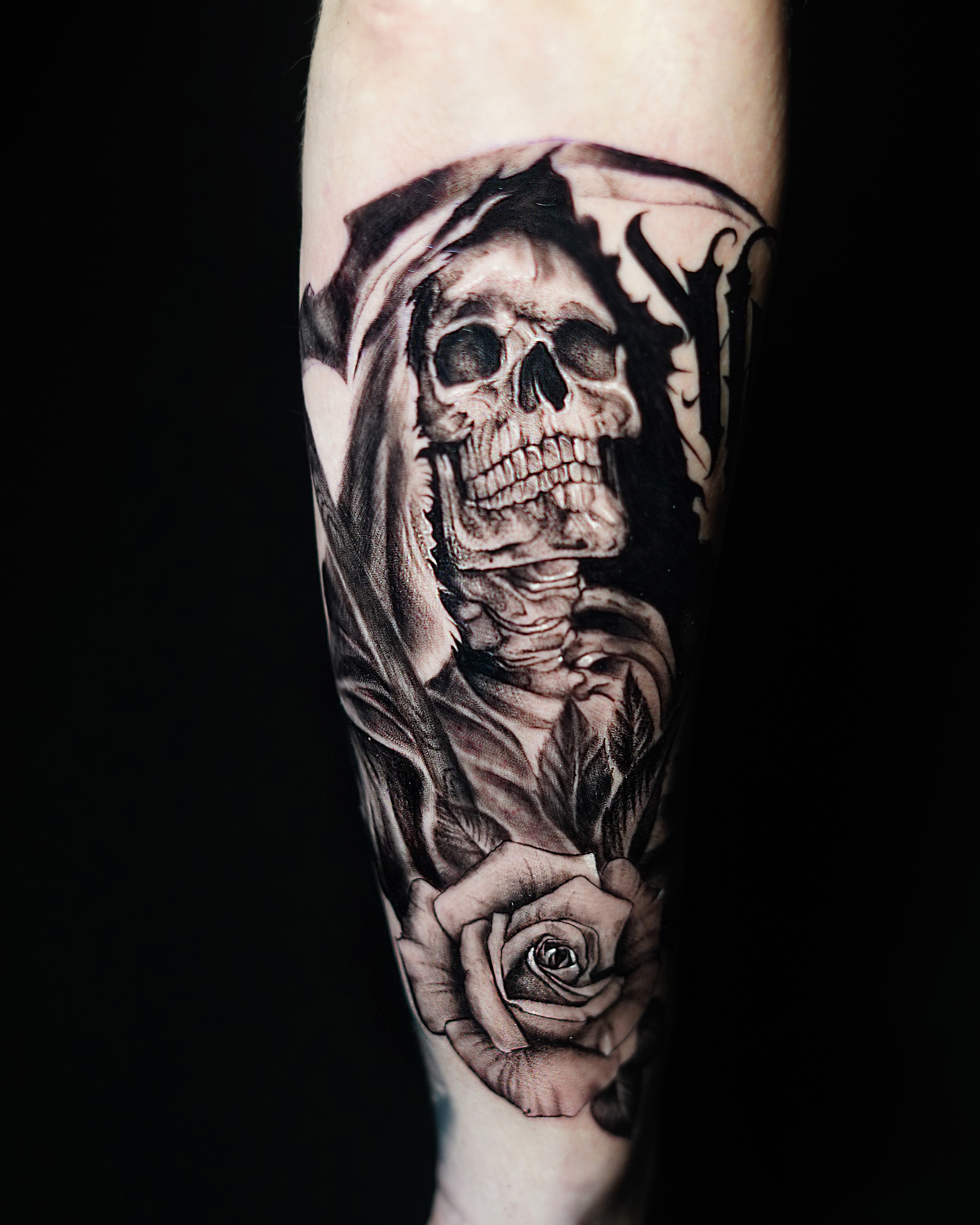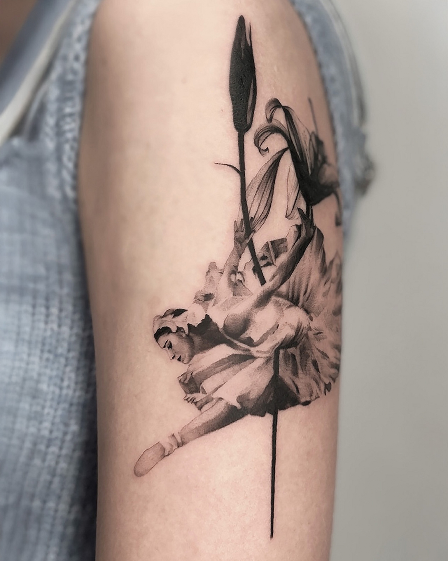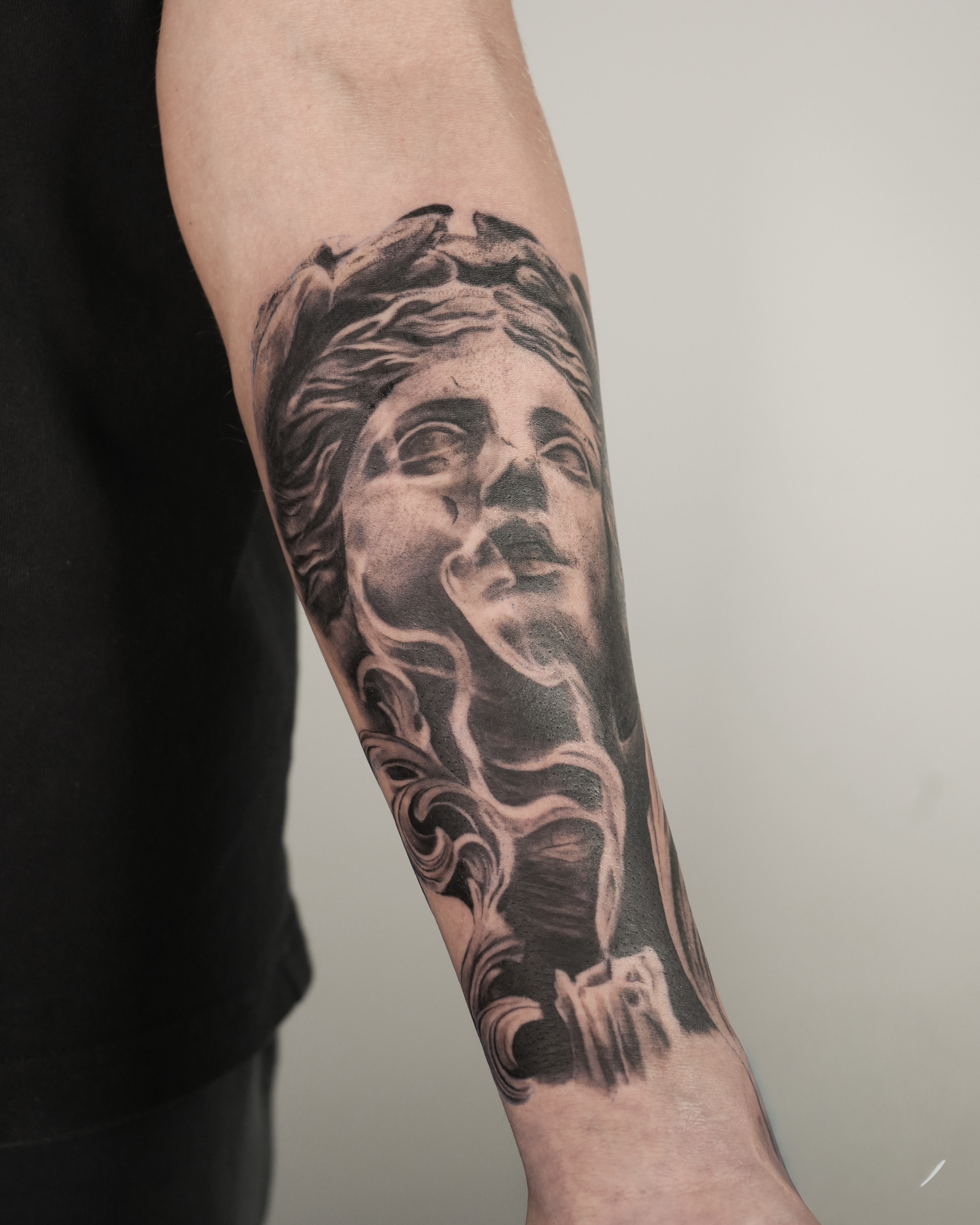 Black and grey tattoos can recreate a design almost like a photograph, with a focus on light, shadow, and realism.